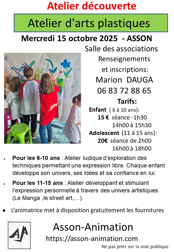 - For 6-10 year-olds: discover a fun workshop to explore techniques and express yourself freely. Each child develops his or her own universe, ideas and self-confidence. Workshop from 2:00 pm to 3:30 pm.