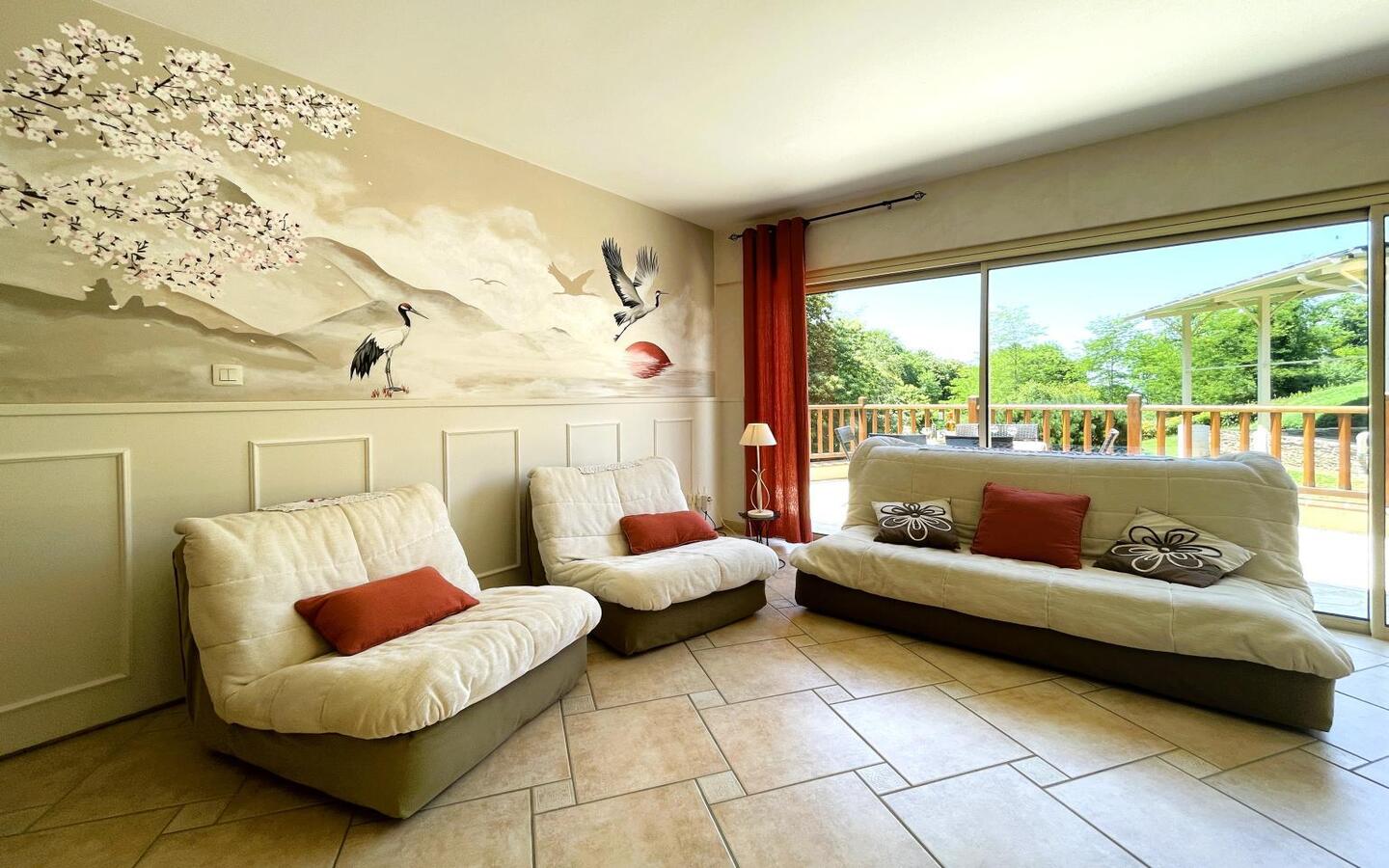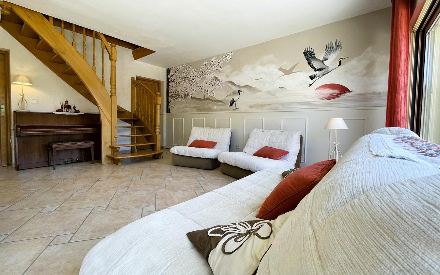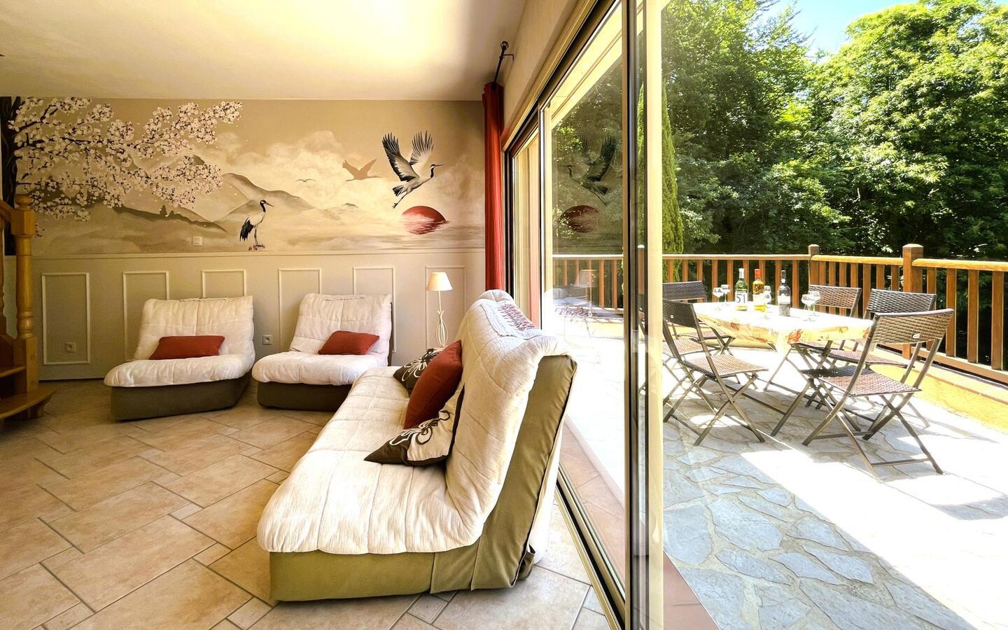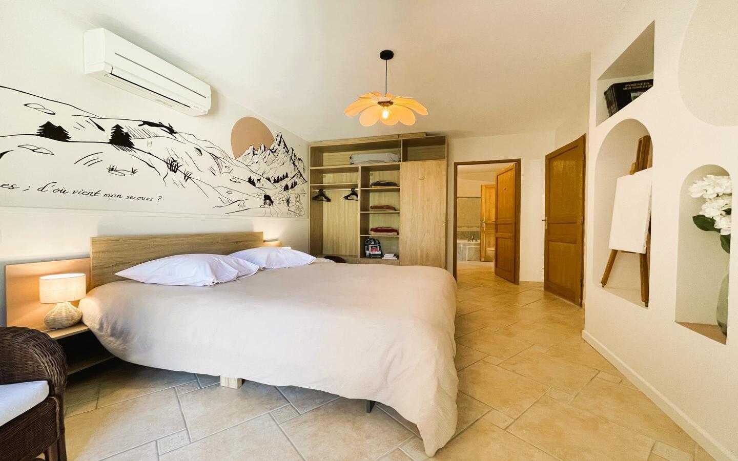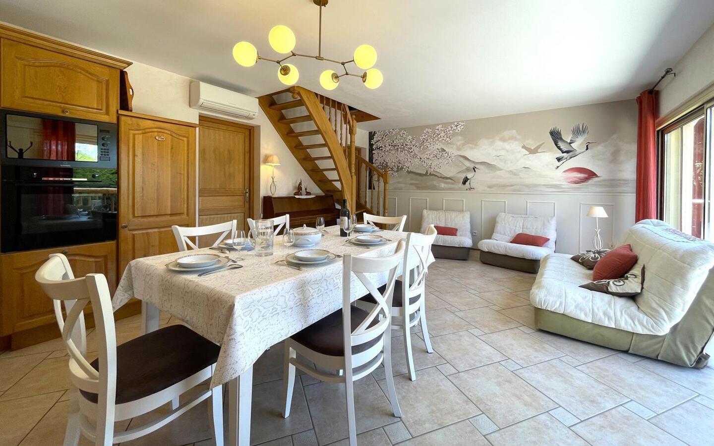 A warm and comfortable gîte at the foot of the Pyrenees. Kojonomaï, with its Japanese flavour, is located in the charming Béarn town of Coarraze, close to the Chemin Henri IV. It is ideal for a relaxing and rejuvenating holiday. It has all the comforts you need, including Wi-Fi, air conditioning and a relaxation area with Vital Dôme. It also opens onto a varied garden. Jean-Luc and Marie-Hélène welcome you to their two-storey gîte, which combines wood and modern features. It has 3 bedrooms and can accommodate up to 6 people. Nearby, you can enjoy a wide range of activities, including hiking trails, exploring the Pays de Nay and excursions to the Pyrenees.