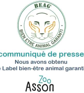 Le Zoo d'Asson vient de recevoir le label "*Bien Etre Animal Garanti". Cette démarche reste pionnière dans notre pays et conforte le zoo dans ses choix et son éthique qui est la leur depuis la reprise du Parc en 2001.