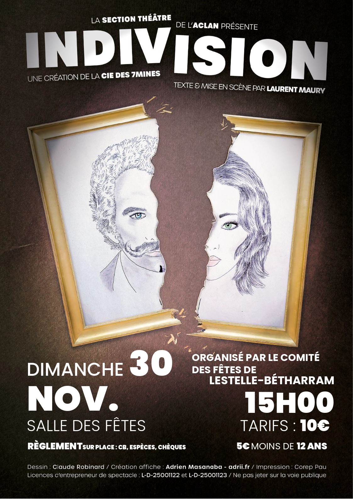 El Comité des Fêtes presenta "Indivision", una obra para todos los públicos. Dirigida por Laurent Maury, creada por la Compagnie des 7 Mines (Nousty).