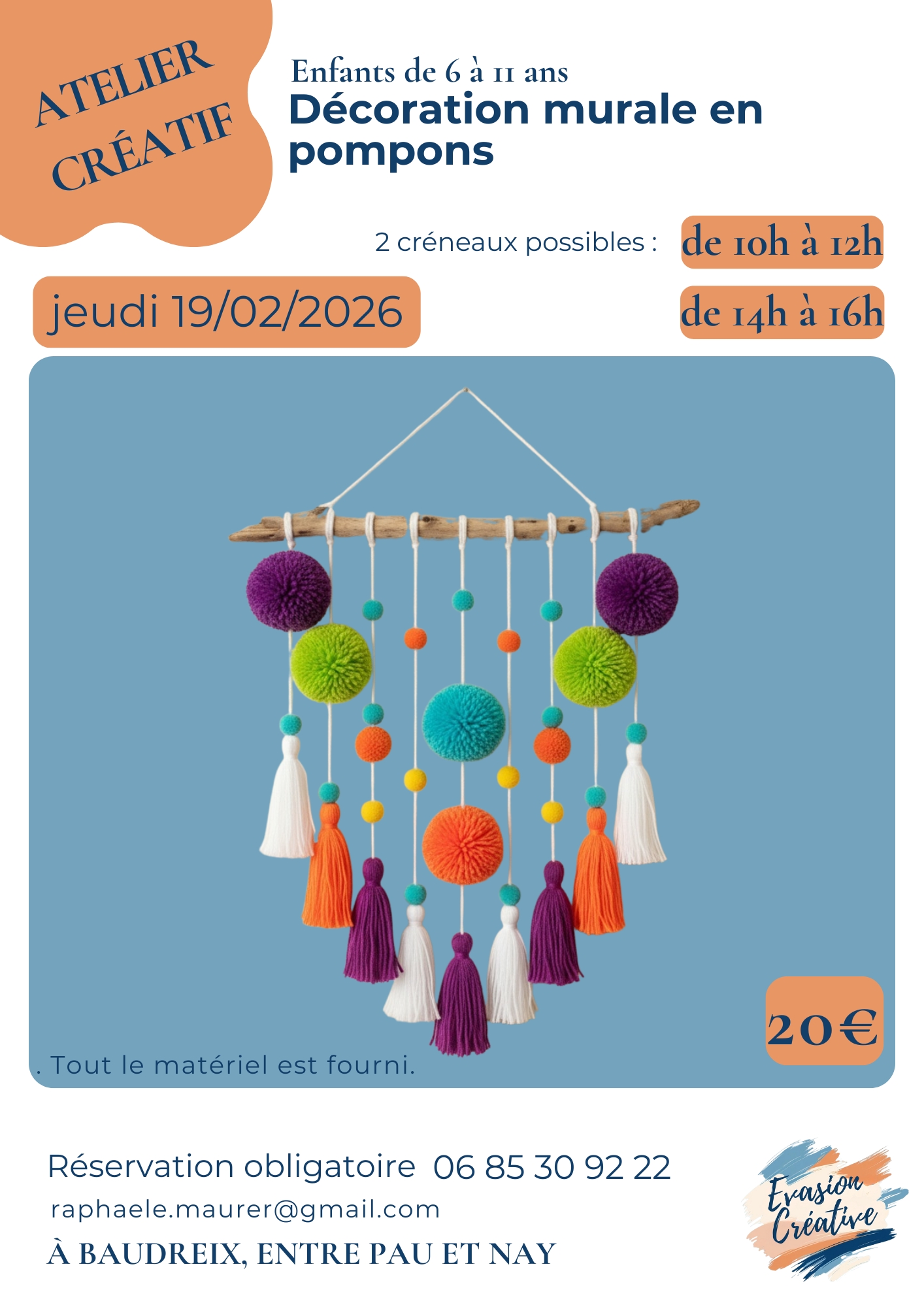 Le matériel est fourni et l’atelier est adapté à l’âge des enfants.