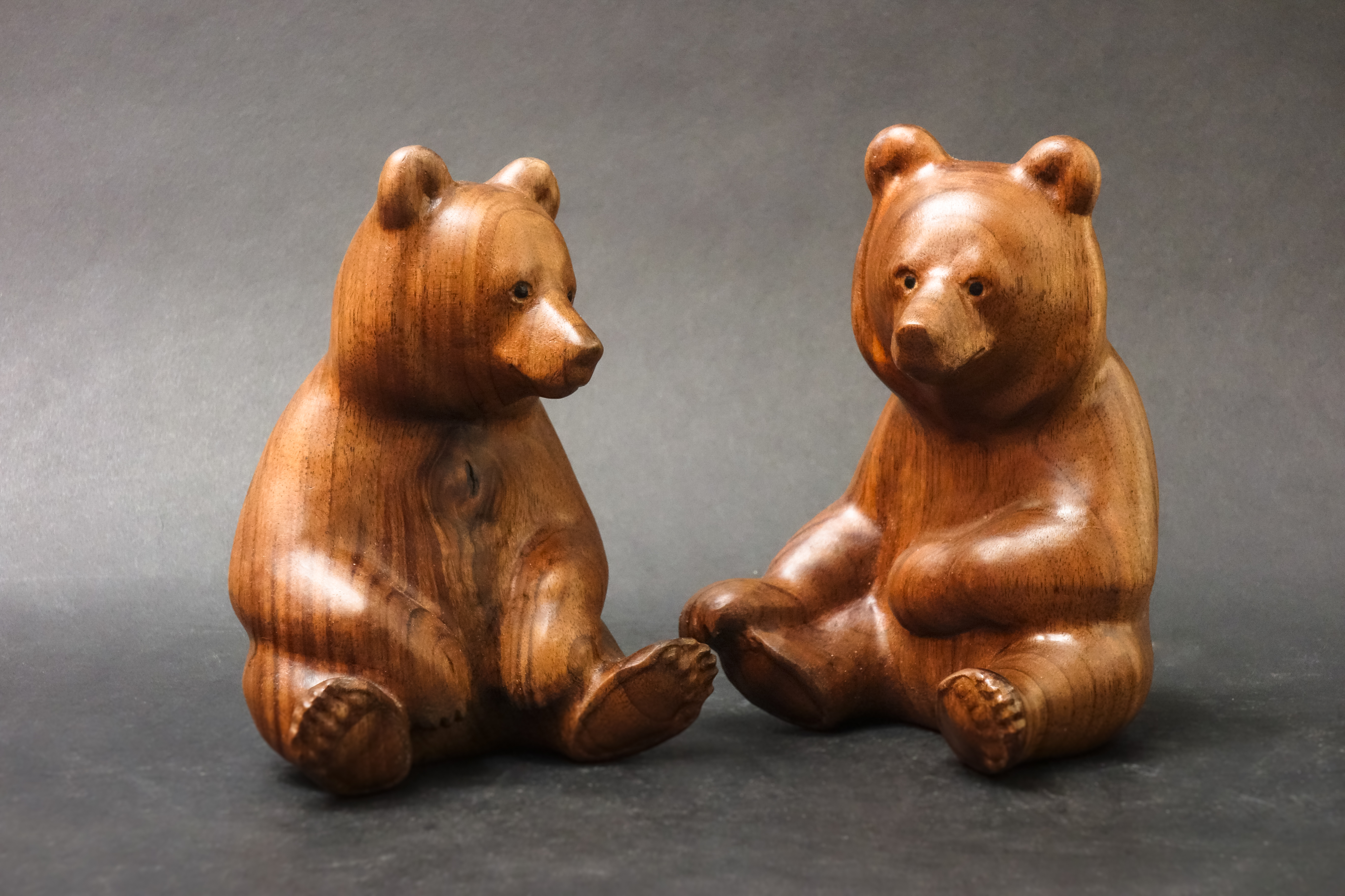 Deux frères ours se toisent, assis confortablement, le dos légèrement courbé. Ces deux nouvelles pièces tout en rondeur et terriblement vivantes viennent rejoindre les nombreuses sculptures poétiques de l’artiste Christian Delacoux. Les deux oursons s’insèrent plus particulièrement dans une galerie de plus en plus fournie d’animaux des Pyrénées : bouquetins, sangliers, marmottes ou oiseaux, qui cohabitent en toute harmonie.