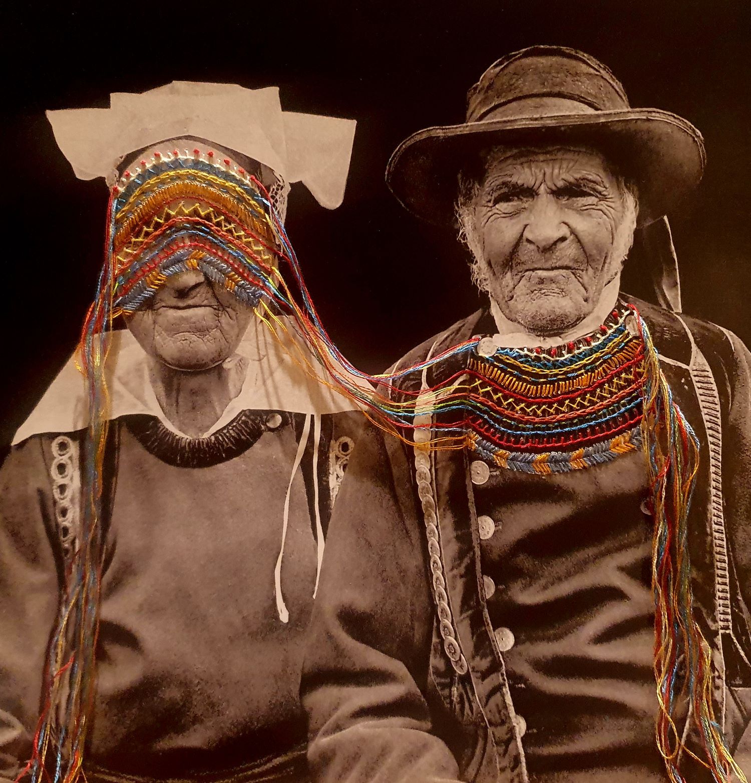 C’est bien du fil de l’histoire dont il s’agit : celui qui rejaillit en couleurs à la rencontre de l’image, pour broder du présent dans un passé figé par son récit. Sous un prisme ludique, Élodie brode ses dessins et des photographies anciennes, oubliées, silencieuses. Cette troisième dimension ouvre une lecture nouvelle, spontanée, insouciante, où la gravité rend les âmes à la joie et le souvenir à la liberté. D’un geste tendre et désuet, elle pique une trace sensible - ligne de vie où se déploient les possibles.