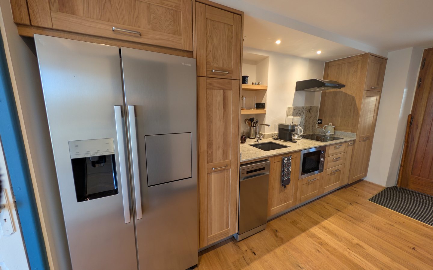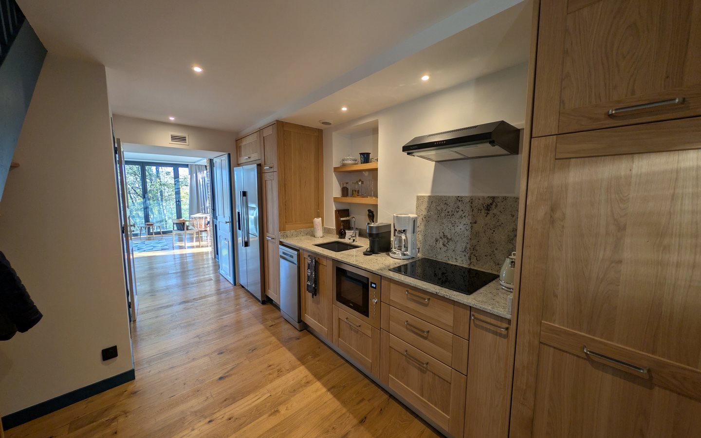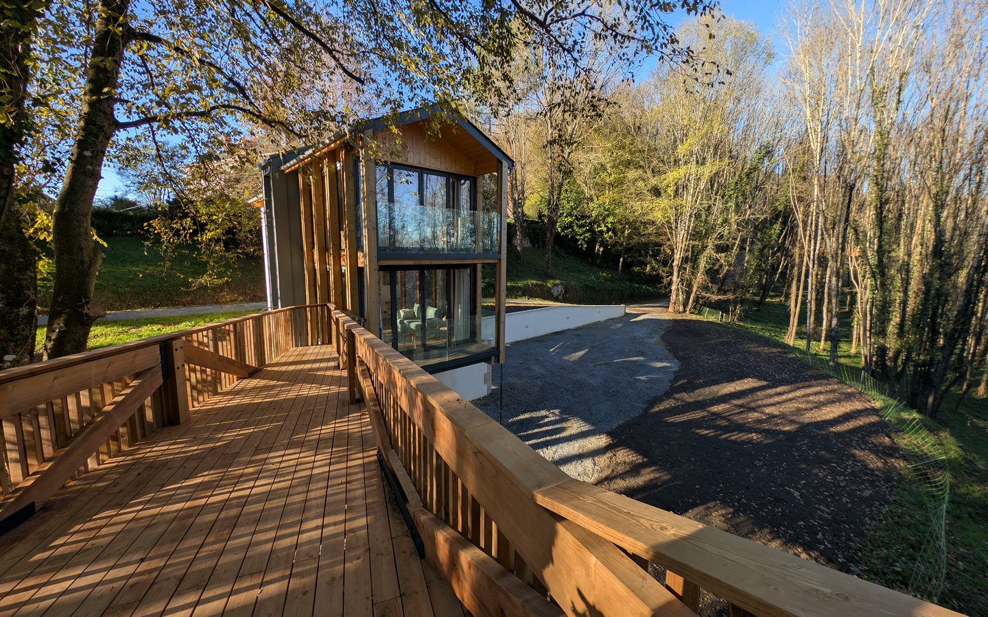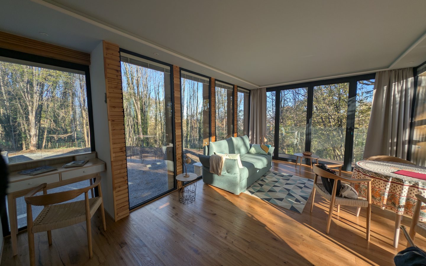 L’hébergement brille par son design contemporain, mariage parfait entre le bois massif et d’immenses baies vitrées qui unissent avec élégance l’intérieur et la nature environnante.